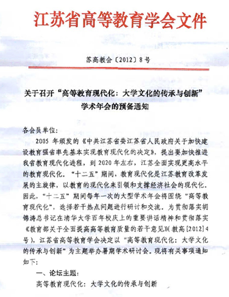 “高等教育现代化:大学文化的传承和创新”学术年会