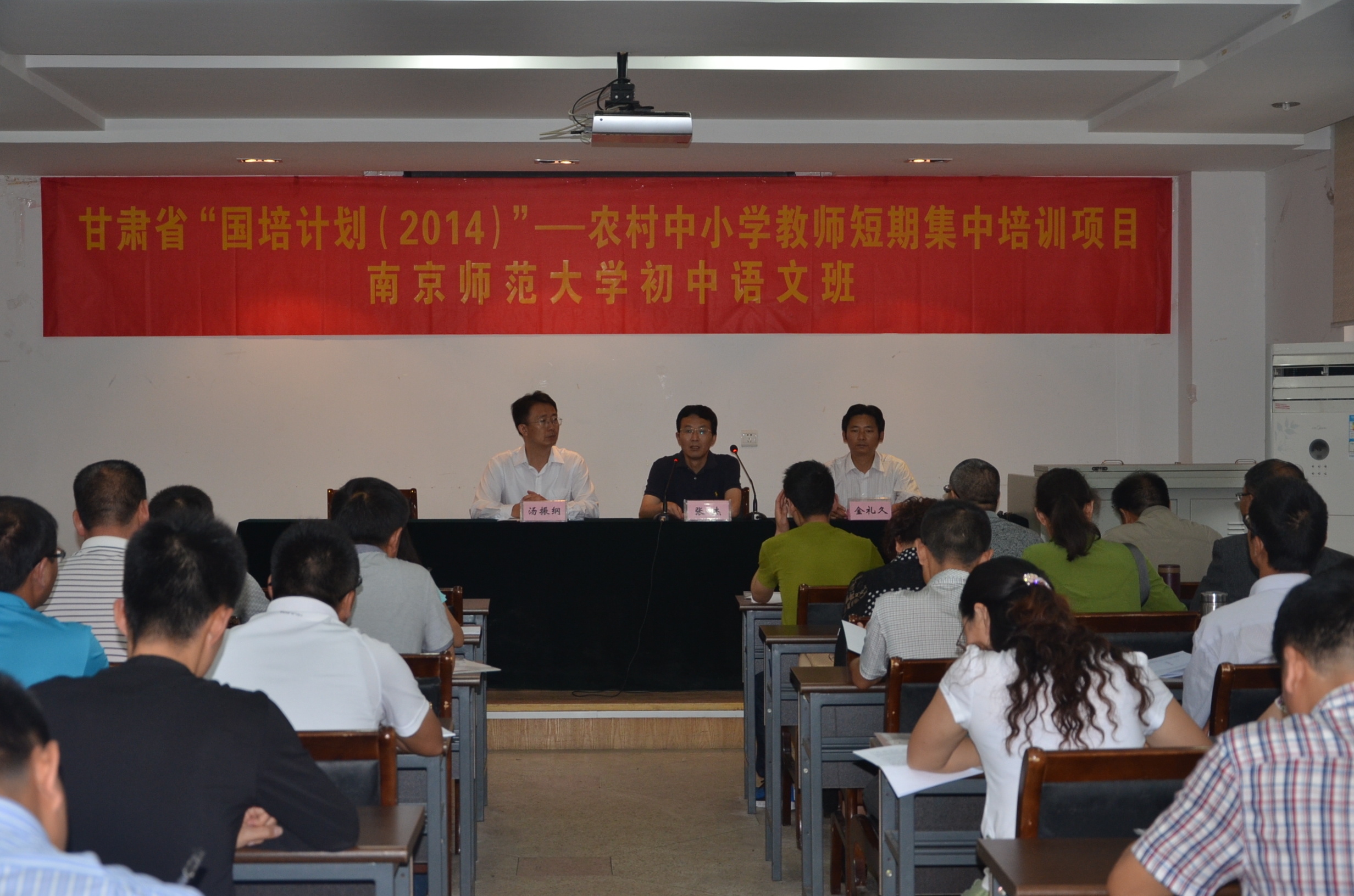 甘肃省中小学语文培训项目主持人介绍了本次研修的课程方案。本次培训设计了教育前沿理论引领、语文学科文本解读、教师职业与人文素养提升等三大模块,下设若干专题,本次研修特别突出了中国古典诗文的教学研讨。本次研修邀请了南京、上海等地的著名专家学者对初中语文学科教育的理论问题与热点进行讲解与阐述,通过理论性学习、反思性学习、实践性学习、体验性学习等各种研修方式推进本次培训班学员的学习成效,提升全体学员的理论素养与教育教学实践智慧。
