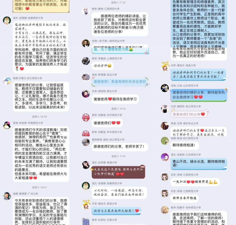 在25日上午的开营仪式上,叶忠院长首先致辞,表达对参营同学的欢迎,并对同学们提出了殷切的期待与要求。导师代表解凯斌教授、朱雪梅教授分别介绍了学科专业优势和特色。吴晓棠老师对夏令营培养方案进行了详细的解读,刘建副院长以“师志不渝 铸造卓越”为题,就南师大教师教育专业改革与发展进行介绍。下午,刘建副院长和金陵中学江敏老师分别做了题为《立德树人——教师职业的道德基础》和《如何成长为一名优秀人民教师》的云讲座。两场讲座,同学们感受深刻,受益匪浅,纷纷表示一定刻苦钻研,师志不渝,为早日成为优秀的人民教师而努力学习。