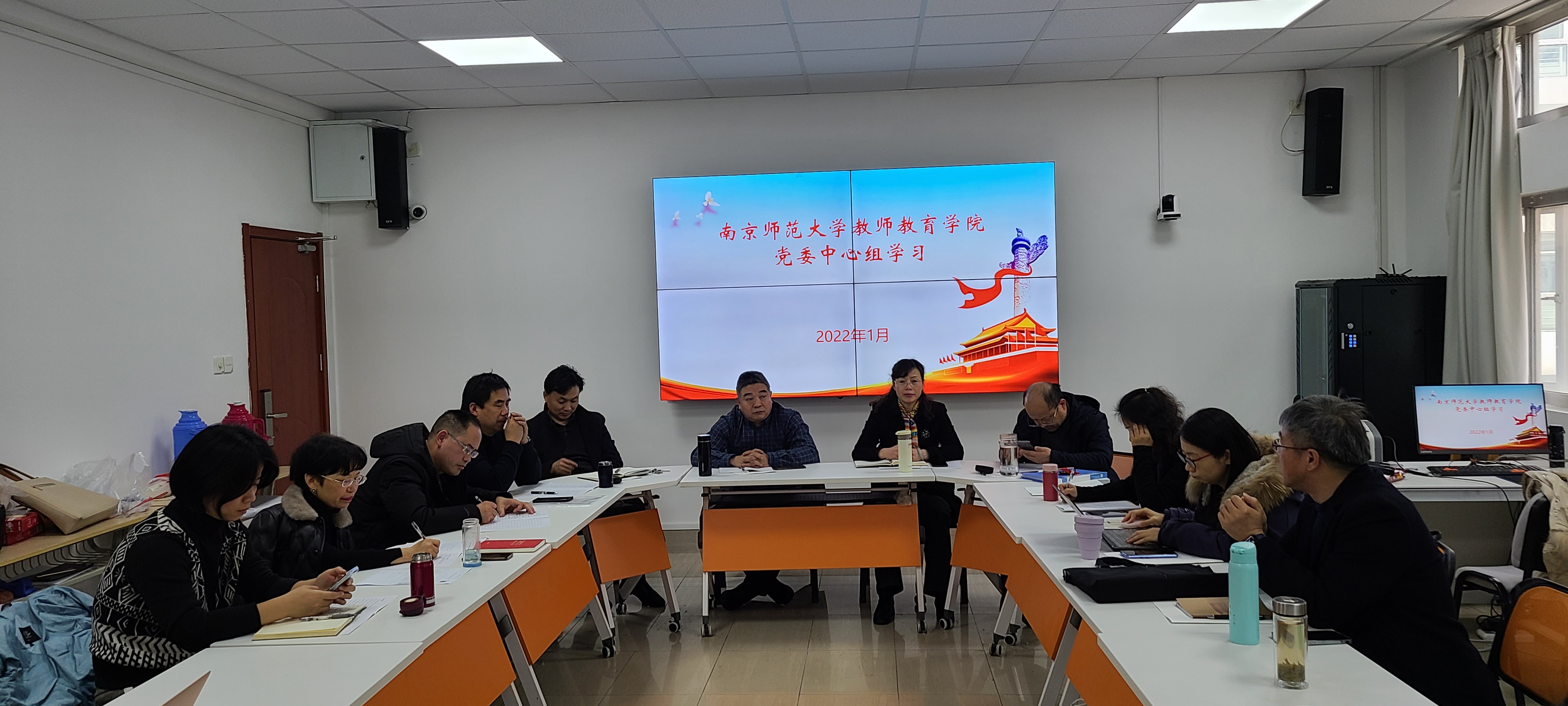 本次学习主题为学习贯彻习近平新时代中国特色社会主义思想,深刻领悟党的十九届六中全会精神,深化落实教师教育改革,着力提升学院人才培养质量,彰显南师教师教育品牌,为120周年校庆做贡献。