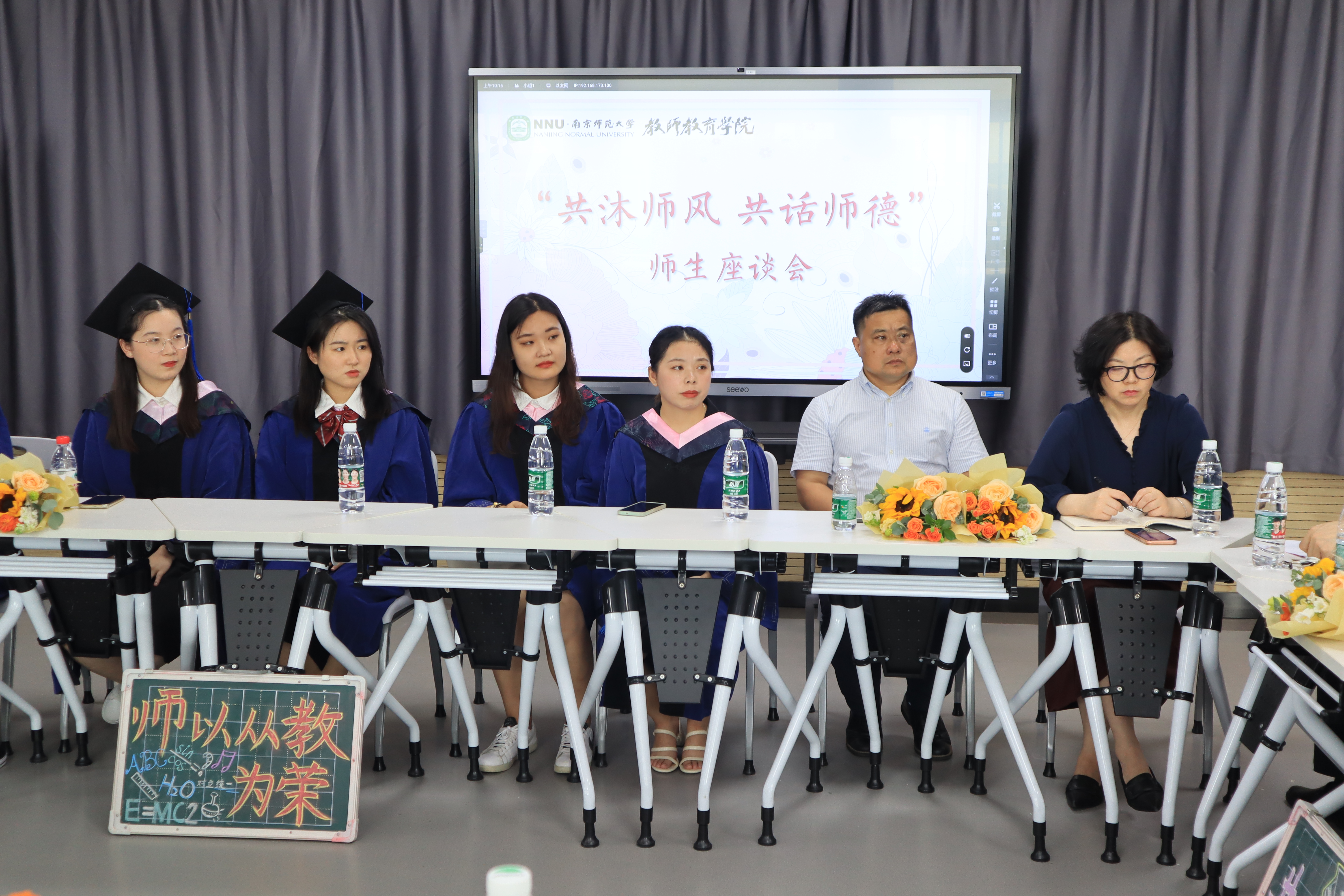 到场的每一位老师、同学们都依次进行了发言。大家结合自身角色、经历和学习体会,讲述了关于“师德师风”的建设、关于“教书育人”的情怀。