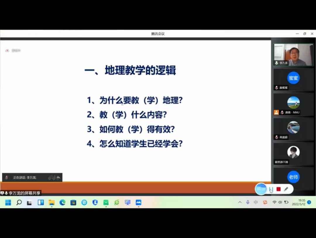 本次讲座就地理教学的逻辑从“为什么教”“教什么”“怎么教”“如何评”等四个方面展开。