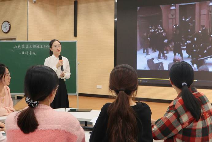 在微课与教学设计展示环节,顾继玲老师和许立新老师分别对微课与教学设计进行了精彩点评。两位老师强调,教师上好一堂课的前提是充分了解学生学情,深刻理解课标教材,精心设计教学流程。两位老师希望各位有志成为教师的研究生们能根据学科特点进行教学内容的组织,规范完整的进行教学设计。学科物理专业的袁明逸同学通过现场实验演示,展开了一节生动的简谐运动微课程教学。学科历史专业的严萌潇同学利用翻转课堂、pad教学等多元手段,进行了一堂关于马克思主义的产生与发展的微课展示。