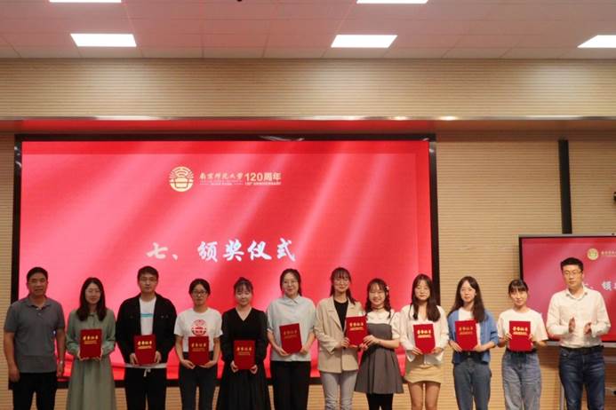 党委书记黄菊香、院长叶忠、党委副书记刘更生、副院长刘建,学科导师代表杨霞、邱莉、顾继玲和许立新,获奖研究生代表,教师院2022级研究生等参与并观摩典礼。