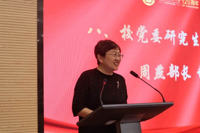 最后,周燕部长对本届研究生教学技能大赛进行了总结。周部长首先向在大赛中取得优异成绩的同学表示热烈的祝贺,她表示,南师大每年有1500多名研究生选择到大中小学的教学研究和教育管理岗位工作,因此,研究生教学技能大赛的举办不仅能为未来教师从业者搭建了展示教学技能、切磋教师基本功的平台,也做到了“以赛促学、以赛促练、以赛促教”,有助于提升学生的职业能力。她希望在座同学们能做到有内涵,学高为师;有师德,身正为范;勤于实践,知行合一,创造属于自己的教育人生。