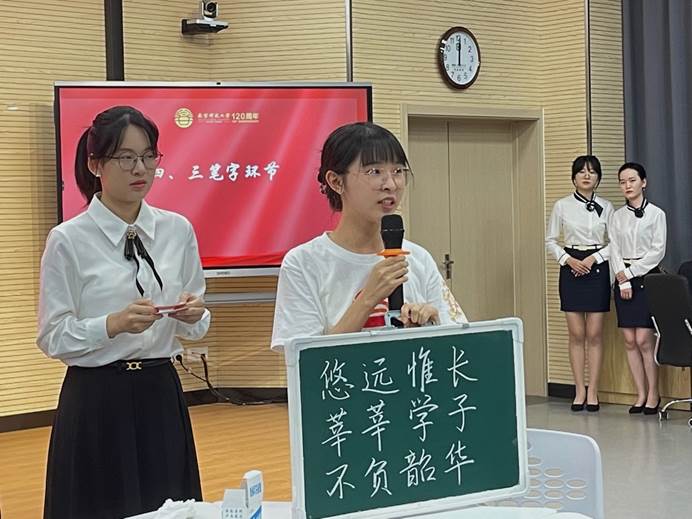 的莘莘学子用浓情笔墨,抒发赤子之心,感恩师长,献礼南师;在百廿优良校风的滋养下,秉持初心,薪火相继,接续奋斗,努力成长为有知识理想、有技能素养的复合型人才。