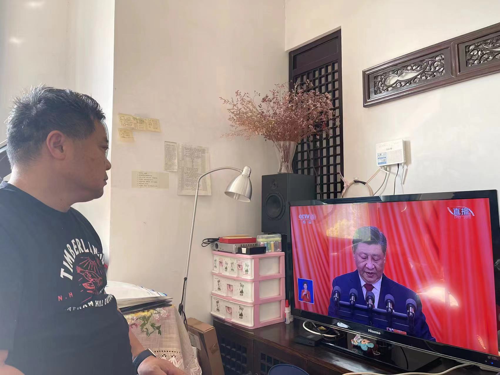 师生在学明楼401集中观看了开幕会现场直播盛况,认真聆听了习近平总书记代表十九届中央委员会向大会所作的报告。大家精神振奋,热情高涨,表示将以党的二十大精神为指引,奋发有为,担当作为,为全面建设社会主义现代化国家贡献力量。