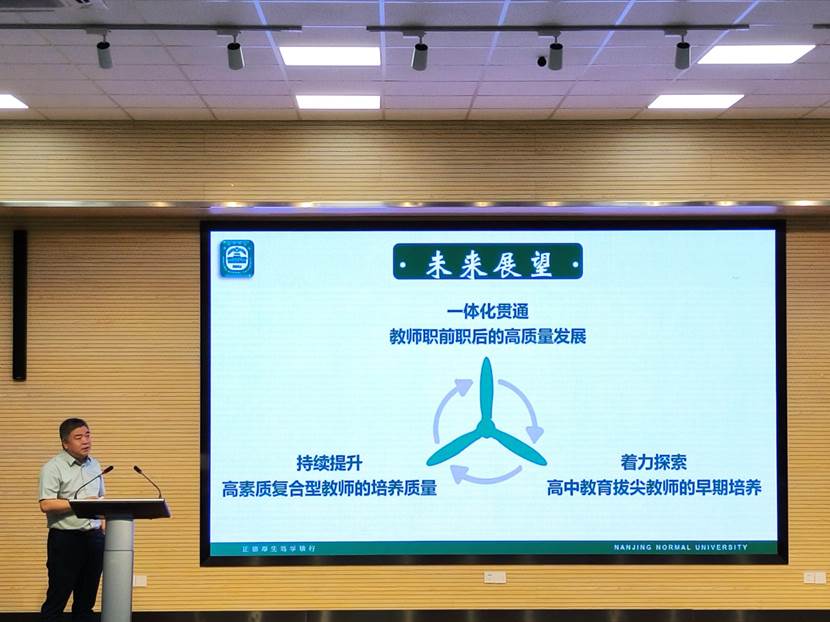 作为我省高等师范教育排头兵在教师教育改革和复合型硕士培养等方面做出的突出贡献,他希望加强政府、高校与中小学在人才培养方面的交流与合作,以培养“四有”好老师和新时代“大先生”为目标,积极推进我省高质量教师教育体系建设,为建设“强富美高”新江苏、实现中华民族伟大复兴的中国梦贡献南师智慧和力量。