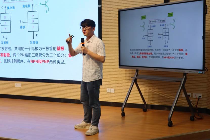 吴键兵同学作为首届复合型教育硕士学生代表发言。吴键兵同学展示了其硕士学习阶段的学习与实践成果,并代表所有同学向学校、学院及各位老师的引领与指导表达了衷心感谢。在微课展示环节,“历史+思政”专业学生代表陈红和“物理+技术”专业学生代表周屹哲分别一人展示了两个学科的教学微课。两位同学用扎实的专业技能、精妙的教学设计、与时俱进的教学理念展现出了新时代复合型优秀教师卓越的教育教学综合素养。