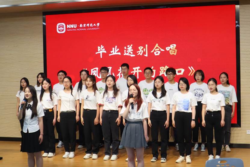 会议最后,即将入学的2023级全体复合型硕士研究生为大家带来《凤凰花开的路口》并向领导与老师献花,祝愿首届复合型教育硕士学长学姐们毕业快乐、前程似锦。本次汇报会议在悠扬动听的歌声中落下帷幕。