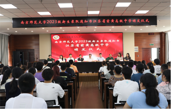 的学校历史、办学特色和辉煌成果。对于新同学给出了殷切希望:期望同学们心怀感恩、开阔视野、勇挑家国担当,在民族复兴的新征程上有所作为,唱响青春之歌!随后黄菊香书记为新生们逐一颁发录取通知书,并送上最真挚的南师祝福。
