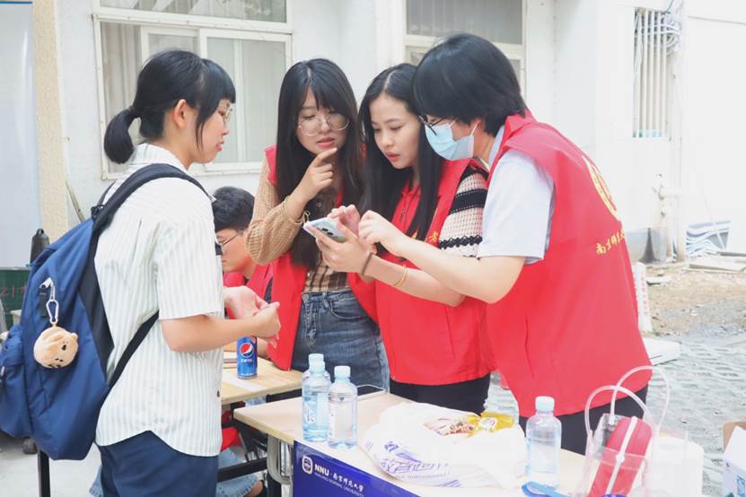 早晨七点,教师院志愿者们早早来到化成楼大厅和东区、南区宿舍楼下,精心策划、周密筹备迎新准备工作。为了帮助新生们顺利入住,师生志愿者们主动搬运各种行李物资,耐心介绍区域环境,引导他们熟悉校园,迅速融入教师院大家庭。