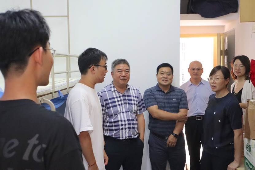 傍晚时分,院党委书记黄菊香、院长叶忠、副院长李成林、副院长解凯彬、团委书记王鑫专程来到宿舍楼走访慰问,与新生们进行了亲切的交流。老师们对2023级新生的到来表示热烈欢迎,希望同学们能把握住全力奋进的研究生生活,把握南师大优质的教育资源,成长为具有社会责任感和创新发展力的优秀人才。
