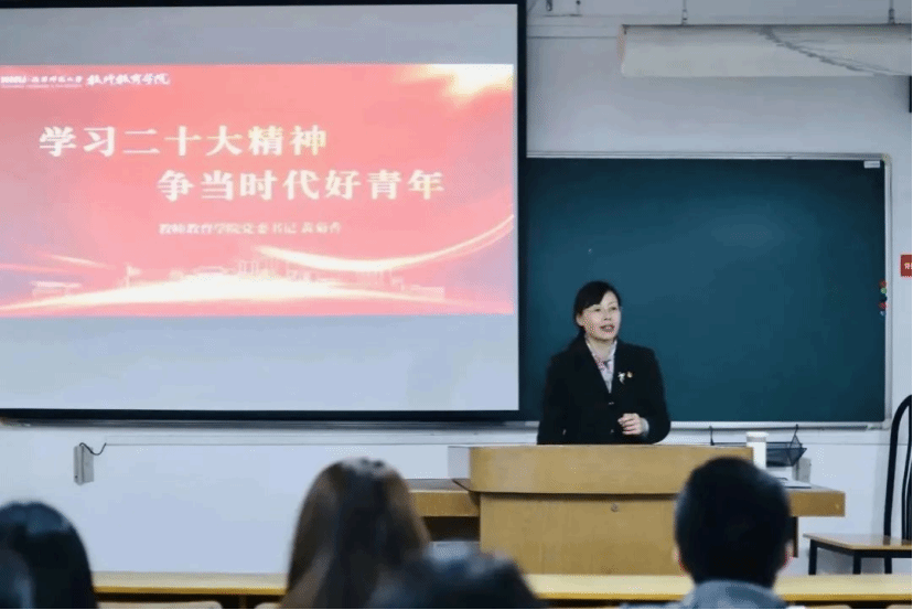红色导师引领党员培养,党支部聘请数十位名师担任党员红色导师,开展名师讲党史、上示范党课,师生共读红色经典等活动,在理论学习中坚定党员理想信念。党委书记黄菊香在《学习二十大精神 争当时代好青年》党课中强调“教育作为国之大计,党之大计,是国家重要的战略支撑”。作为教育硕士,党员同志们应该追求如何去做一个好老师,如何“立家国之志,树教育情怀”。此外,以“师德”为基础,支部党员访谈教育大家和一线教师,深度了解教师教育理念与处世哲学,领会“四有教师”精神,传承优良师德。在此基础上,党支部开展了“二十大精神”红色微课、红色微论坛等多项特色活动,坚定党员理想信念,有效促进教师技能提升,培育青年红心。