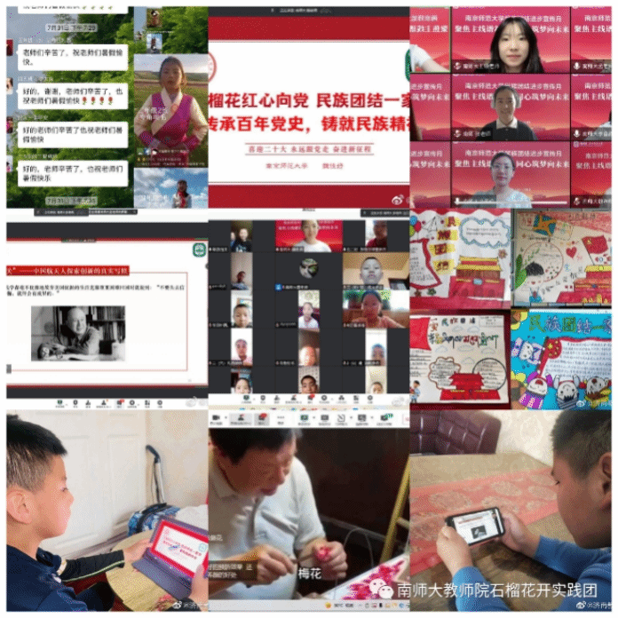 党员先锋聚力量,志愿服务暖人心。党支部与南京市多所中学密切联系,支部党员积极参与中学“红色沙龙”、“红色校本课程”等活动,服务学生超700余人次,充分挖掘红色文化资源,促使党史教育入眼、入心、入脑。支部“石榴花红心向党,民族团结一家亲”团队携手新疆伽师四中、青海第一民小开展“同心课堂”系列活动7次,辐射1000余人次;支部党员在“红色导师”指导下,线下奔赴四川绵竹、重庆大足、贵州独山,线上对接甘肃天水开展支教帮扶,累计授课达6300余节,时长超40000小时,帮扶对象逾6000人。依托形式丰富的教育宣讲,支部党员以教育助力乡村振兴。