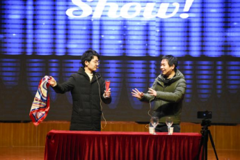 晚会开始,学科地理班的同学带来了创意十足的情景剧《成长的投影》,在灯光与帷幕的配合下,演员化身剪影,讲述了2023级新生入学以来的丰富多彩的学习生活故事,使同学们感同身受。学科语文班的节目在诗歌朗诵《雨巷》中开始,意蕴悠长,引人遐想,再以一首《青花瓷》,领大家共赏江南之美。紧接着,歌曲串烧《世界的角落》婉转动听,将观众的思绪带到世界的不同角落畅游。魔术《神奇的容器》则新颖有趣,引发惊叹,惹人捧腹。魔术表演结束之后,迎来了晚会的第一轮抽奖环节。本次共有十位同学获得三等奖,由刘建副院长为中奖同学颁奖,现场气氛格外高涨。