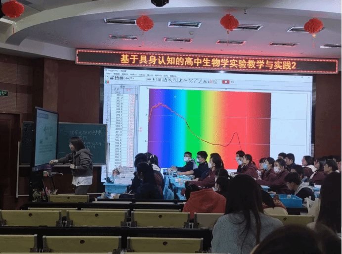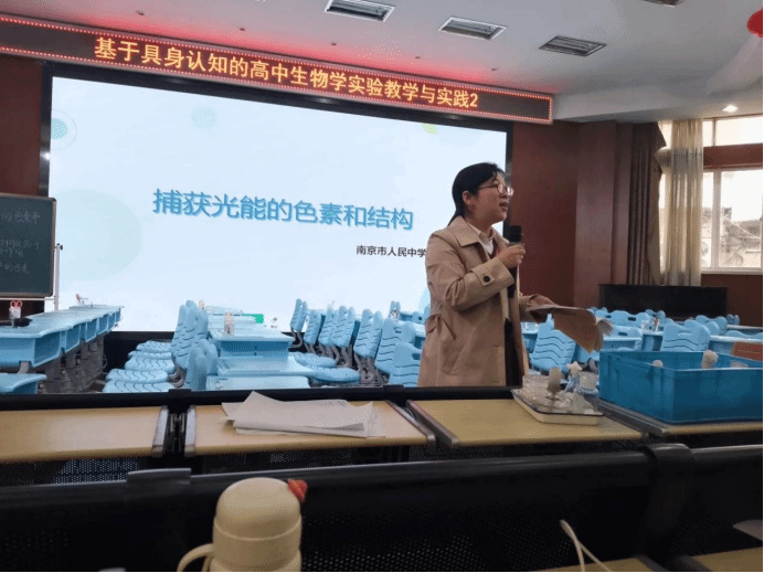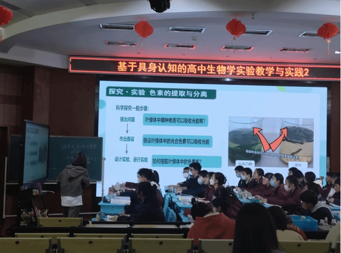 南京市人民中学林佳晨老师开设《捕获光能的色素和结构》的公开课。林佳晨老师以植物大战僵尸游戏作为课堂导入来吸引学生学习兴趣,引导学生认识到光照对植物的重要性。通过呈现恩格尔曼探究光合作用的科学史材料,深入分析恩格尔曼实验在选材与设计上的巧妙之处,并引导学生基于实验现象对叶绿体的功能进行总结和归纳。随后,教师引导学生围绕“叶绿体中哪种物质可以吸收光能”这一问题展开科学探究活动,组织学生在了解实验步骤和注意要点的基础上,以小组为单位开展色素的提取与分离的实践活动,并对学生的实验结果以及出现的异常现象进行总结和分析。最后教师使用分光光度计测定所提取的色素溶液在不同波长下的吸光度值,并呈现出了吸收光谱,拓展了学生的知识视野,促进学生对光谱分析有了更深入的理解。林佳晨老师的课堂通过引导学生分析科学家探究光合作用的科学史材料,并对能满足于光合作用进行的叶绿体结构基础进行归纳总结,以培养学生形成结构与功能相适应的生命观念,随后开展色素的提取与分离的实验操作,引导学生学习科学探究的基本思路与方法并提升实践能力,助推学生生物学学科核心素养的形成和发展。