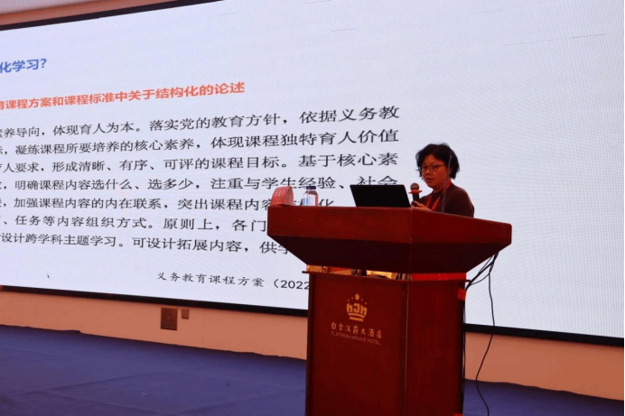 顾继玲老师在《教育本位的初中数学教材设计》的专题报告中,针对如何促进学生结构化学习的教材设计进行分享,着重强调了教材如何促进结构化学习。她提出,教材内容的选择与组织应体现结构化,教与学活动设计应体现“学生认知过程结构化”:设计章前“持续思考问题”、结构化的问题、结构化的习题等引发学生的结构化思考。