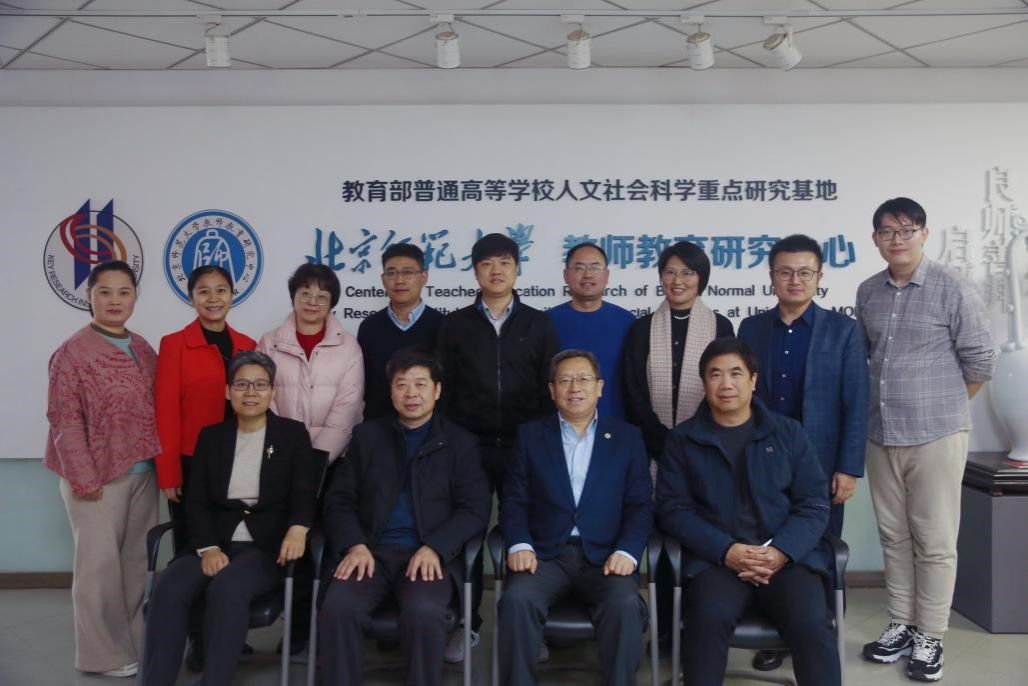 院长冯建军教授、副院长刘建教授、王加强教授、许立新副教授、朱榕老师赴北京师范大学教师教育研究中心调研。北京师范大学教育学部部长、教师教育研究中心主任朱旭东教授、常务副主任李琼教授、教师教育研究所所长宋萑教授等老师参与会谈。
