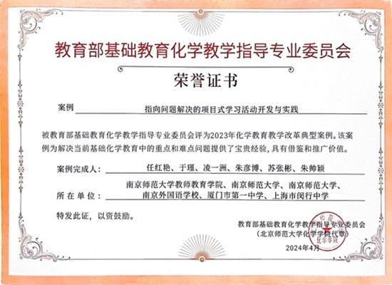 完成的《指向问题解决的项目式学习活动开发与实践》项目荣获“化学教育教学改革典型案例”(全国仅20项),并在活动现场交流展示。