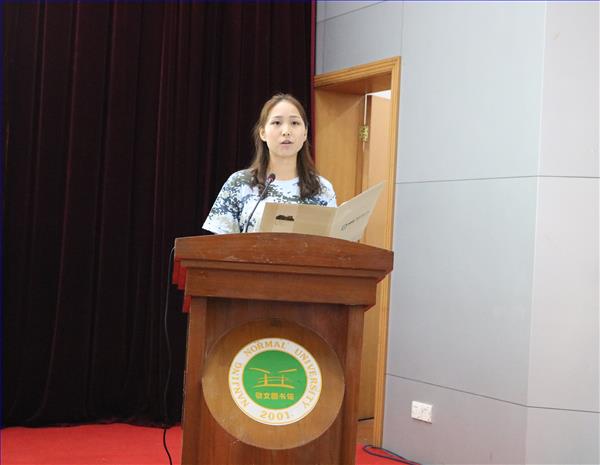 学生会主席徐雯恬同学作为老生代表,向新生们分享了两年来她与南师相遇、相知的故事。回顾两年时光,她与师院共成长,从小干事到学生会主席,也获得了校优秀团干部、校优秀团员、校三好学生以及优秀班干部的荣誉。作为有着丰富经历和学识的学姐,她告诫新生,要学会规划人生,学会充实生活,学会独立思考,在师院重新起航。“盛年不重来,一日难再晨”,她勉励大家珍惜大学四年的时光,在新的征程里不断拼搏向上。