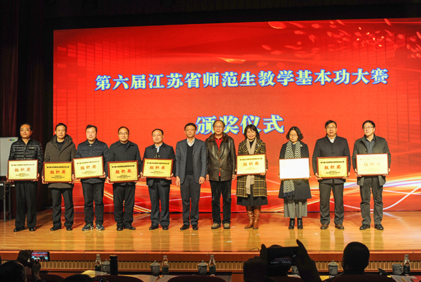 会议以报告、展演等形式对2017年师范教育工作做了总结。傅康生做了教指委工作报告,对第六届江苏省师范生教学基本功大赛进行了总结。2017年,在教育厅的领导下,教指委继续发扬务实创新的工作作风,凝聚改革智慧,汇集各方力量,稳步有序地推荐了一系列教师教育研究和实践工作,取得显著的工作成效。相比往年,本届师范生教学基本功大赛更加贴近社会、更加规范有序、更具深远影响,充分展示了我省教师教育改革的成果。本届大赛产生学前教育一等奖选手10名,小学教育一等奖选手15名,中学教育一等奖选手25名,艺体教育一等奖选手13名,组织奖9个。13个省辖市教育局领导为一等奖选手颁发了荣誉证书,潘漫副厅长和傅康生副校长为获得组织奖的学校颁发了奖牌。我校6名选手获得大赛一等奖,学校获得大赛优秀组织奖。