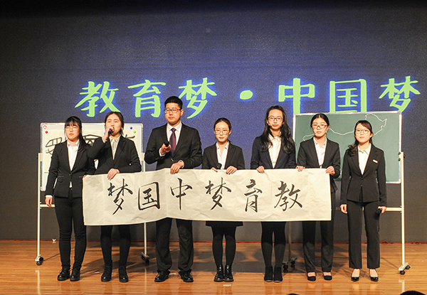颁奖仪式后,来自江苏第二师范学院学前教育专业、南京晓庄学院小学教育专业和我校中学教育卓越班的同学奉献上一台师范生风采展演。其中,我校中学教师卓越班学生以梦为主题为大家带来了一节生动的主题班会,充分展现了南师大师范生的各项专业技能。