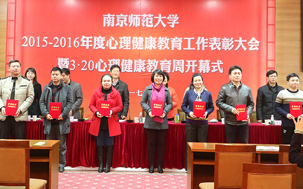 2015-2016年度心理健康教育工作表彰大会暨320心理健康教育周开幕式在仙林校区芳菲楼一楼报告厅隆重举行。会议对2015-2016学校心理健康教育工作先进单位和优秀个人进行了表彰,8个学院获“心理健康教育工作先进集体”称号,12个学院心理气象站荣获“优秀心理气象站”称号,11位老师荣获“心理健康教育工作先进个人”称号,33名同学荣获“优秀学生干部”荣誉称号,133名同学荣获“优秀心理气象员”荣誉称号。黄色视频被评为心理健康教育工作先进集体,黄色视频德馨心理气象站被评为优秀心理气象站,支景老师被评为心理健康教育先进个人,陆子桢等4名同学被评为优秀心理气象站干部和优秀心理气象员。