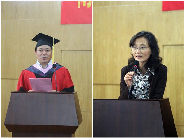 研究生院常务副院长、招生处处长孙志人老师讲话,他提到了教育部部长袁贵仁关于“提高教育质量”的重要讲话,鼓励同学们能够发挥自身热情投入到教育事业中,一步步壮大教师队伍、提高教师队伍素质。最后,魏院长与全体毕业生分享了三句话:一是志存高远,坚守理想;二是修身治心,立德端行;三是沉潜砥砺,厚积薄发。并把南师大校歌的一句话送给大家作为毕业赠言:“展翅翱翔,向万里碧空;桃李芬芳,清誉满寰中。”