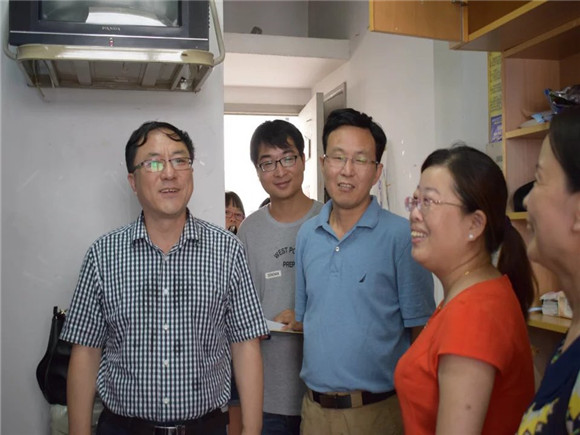 下午两点,院领导们及各年级辅导员老师来到了东区宿舍楼1栋看望教师院2016级本科生。这给了正在宿舍里整理内务的家长和新生一个大大的惊喜。