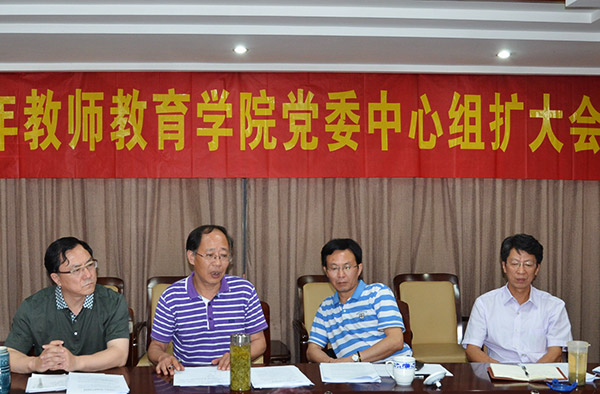 (省高校师培中心)于7月15日召开党委中心组扩大会议,党委常委、副校长傅康生出席会议并讲话,学院(中心)党政班子全体成员及工会、各系所中心负责人等20多人参加了会议。