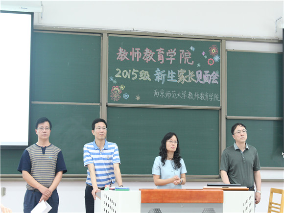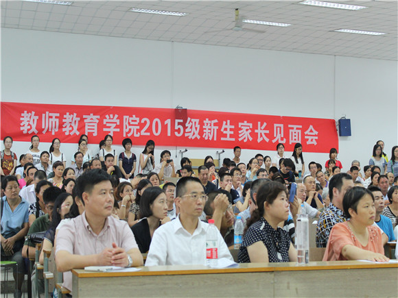 在学明楼202教室举办了2015级新生家长见面会。教师院常务副院长杨作东教授、党委书记张杰老师、党委副书记江胜尧老师、副院长周晓静老师和教师院团委副书记、15级辅导员翟云秋老师、李晓亮老师出席了本次家长会,家长会由教师院党委副书记江胜尧老师主持。