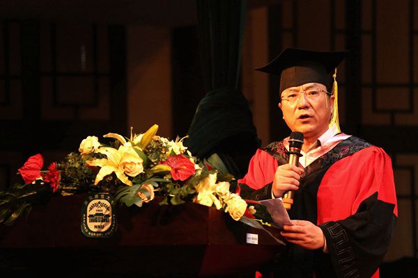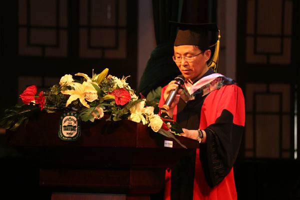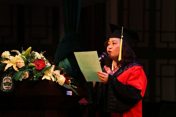 汪涛老师向在场全体师生介绍了出席本次典礼、仪式的领导来宾,宣布典礼开始。国歌声中,古典而浪漫的随园音乐厅显得分外庄严,毕业典礼正式拉开了帷幕。