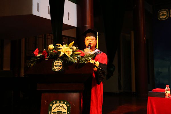 “未来教育家“的目标、多年来为此做出的改革创新和努力。最后,魏院长与全体毕业生分享了三句话:一是志存高远,坚守理想;二是修身治心,立德端行;三是沉潜砥砺,厚积薄发。并把南师大校歌的一句话送给大家作为毕业赠言:“展翅翱翔,向万里碧空;桃李芬芳,清誉满寰中。”