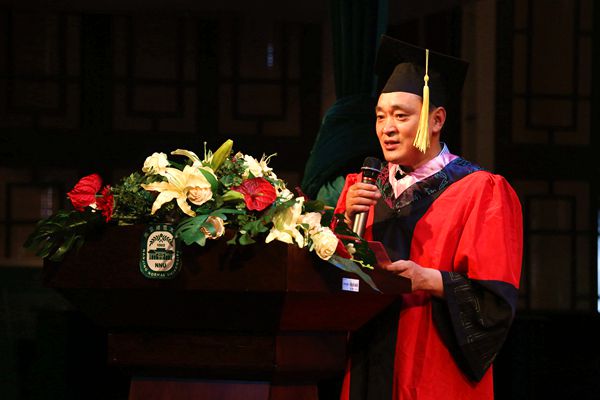 院长杨作东老师向全体毕业生做了真挚、感人而满怀期望的致辞。他总结了全体毕业生在校期间取得的荣誉、成绩和贡献,深情回忆了毕业生们与教师院共同成长的时光。同时以师长的身份同全体毕业生分享了三句话:一:立志“古之成大事者,不惟有超世之才,亦必有坚韧不拔之志。”二:求真。“千教万教教人求真,千学万学学做真人。三:向善。“上善若水,水利万物而不争。最后,杨院长对即将远行的毕业学子们送上了真诚的祝愿。
