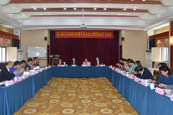 潘百齐副校长首先宣读了教指委《关于举办第三届江苏省师范生教学基本功大赛的通知》及《关于成立第三届江苏省师范生教学基本功大赛组委会的通知》。会上,与会成员从引领教师专业化改革方向、推动师范生能力提升、满足基础教育实际需求等方面,就本届大赛的考评方案展开讨论,并对大赛专家库的建立及管理、各赛点具体比赛的时间等问题进行商讨。大家认为本届比赛在省教育厅的领导下,在省教指委、大赛组委会、各赛点单位、各参赛学校的共同努力下,一定会对我省师范院校人才培养质量提升产生积极作用,促进我省教师教育改革向更深层次推进。