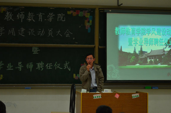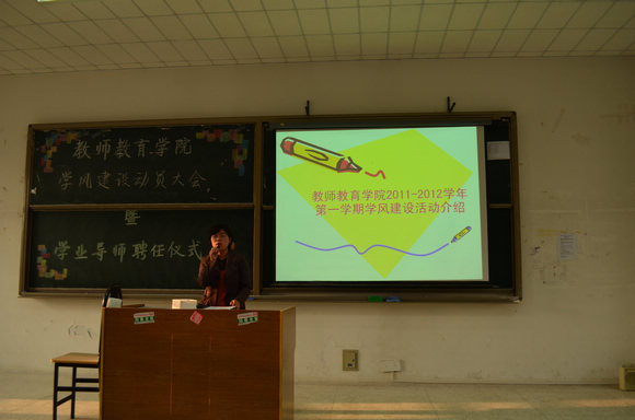 党委副书记朱冬梅老师首先就学院2011-2012学年第一学期的学风建设活动进行了总体介绍。黄色视频本学期的学风建设活动将在学院和班级两个层面上同时展开,共为四个部分,其中第一部分为本次学风建设动员大会暨学业导师聘任仪式,第二部分是学院层面的学风建设活动,主要包括《黄色视频