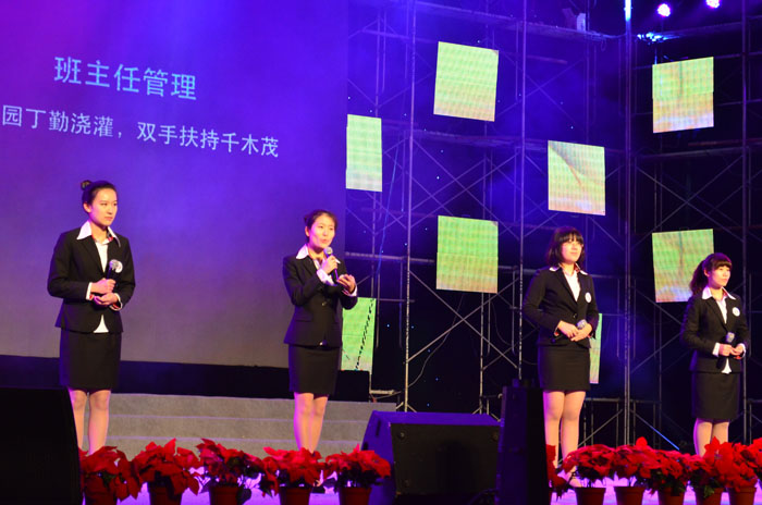 下午2点,校十佳班级总决赛正式拉开序幕,时间在一幕幕精彩的成果展示中飞快流逝。作为第11个展示班级,英语师范班的展示在院教师技能系系主任杨霞老师的发言中拉开序幕,杨老师以一封信的形式表达了她对同学们的祝贺和期望。在助威团响亮的口号中,张立、刘颖、王亚男、韩雅雯四位同学走上舞台,从班风建设、学风建设、制度建设、班级活动、班主任管理、网络建设等六大板块,以“十年树木,百年树人”的理念,将班级一年来所取得的成果一一呈现。完美的展示了黄色视频