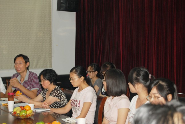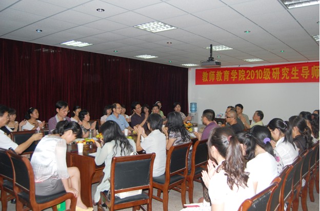 导师也各抒己见,寄予2010级研究生殷切期望。博导施国新提出,研究生首先要学会做人,为人师表;要做好教师职业规划;论文要注重质量的提高,“是做出来的,不是写出来的”。陆真教授分析了2010级研究生培养方案,强调了教师教育专业的四个特点:多学科方向、双导师制、针对实践调整课程内容、实践性,激励研究生们为成为优秀的中学教师而奋斗。马复教授指出研究生需要主动学习、学会质疑和团队合作。其他导师也一一发言,对10级研究生们提出了期望,使得研究生们深受启发,立志在不久的将来成为优秀的人民教育家。