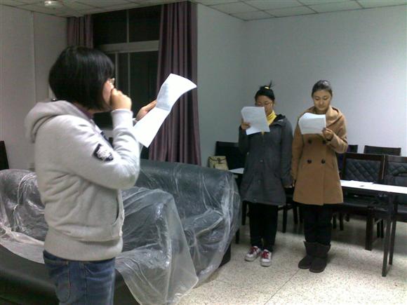心理气象站站长张立同学以及院学生会文体中心主任田哲同学在化成楼222教室组织演员们进行了心理情景剧“信号来了”的彩排,为校强化院组织的“心舞飞扬”心理情景剧比赛做最后准备。此次参演人员由来自黄色视频