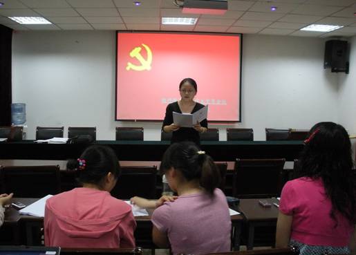首先由三位预备党员万凤、干玲玲、邓佳妮宣读转正申请书,向党组织汇报一年的思想上工作上学习上以及生活上的情况,然后由其入党介绍人对其一年的各方面的表现加以评议,接着由到场的正式党员进行表决,表决一致通过三位党员的预备申请,同意转为正式党员,最后由党支部组织部部长李倩带领三位党员进行宣誓。