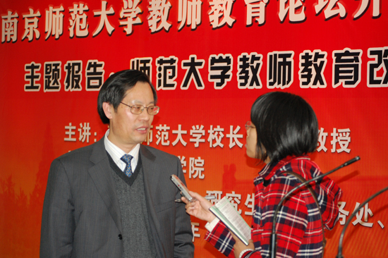 宋校长的报告内容丰富、视野开阔,全面梳理了教师教育的现状和发展,深刻分析了教师教育的深层次问题。报告引起了所有与会者的强烈共鸣。论坛上宋校长与论坛参加者进行了互动。我校国家级教学名师马景仑教授、相关部处领导、老师和研究生就教师教育问题展开了热烈的讨论。