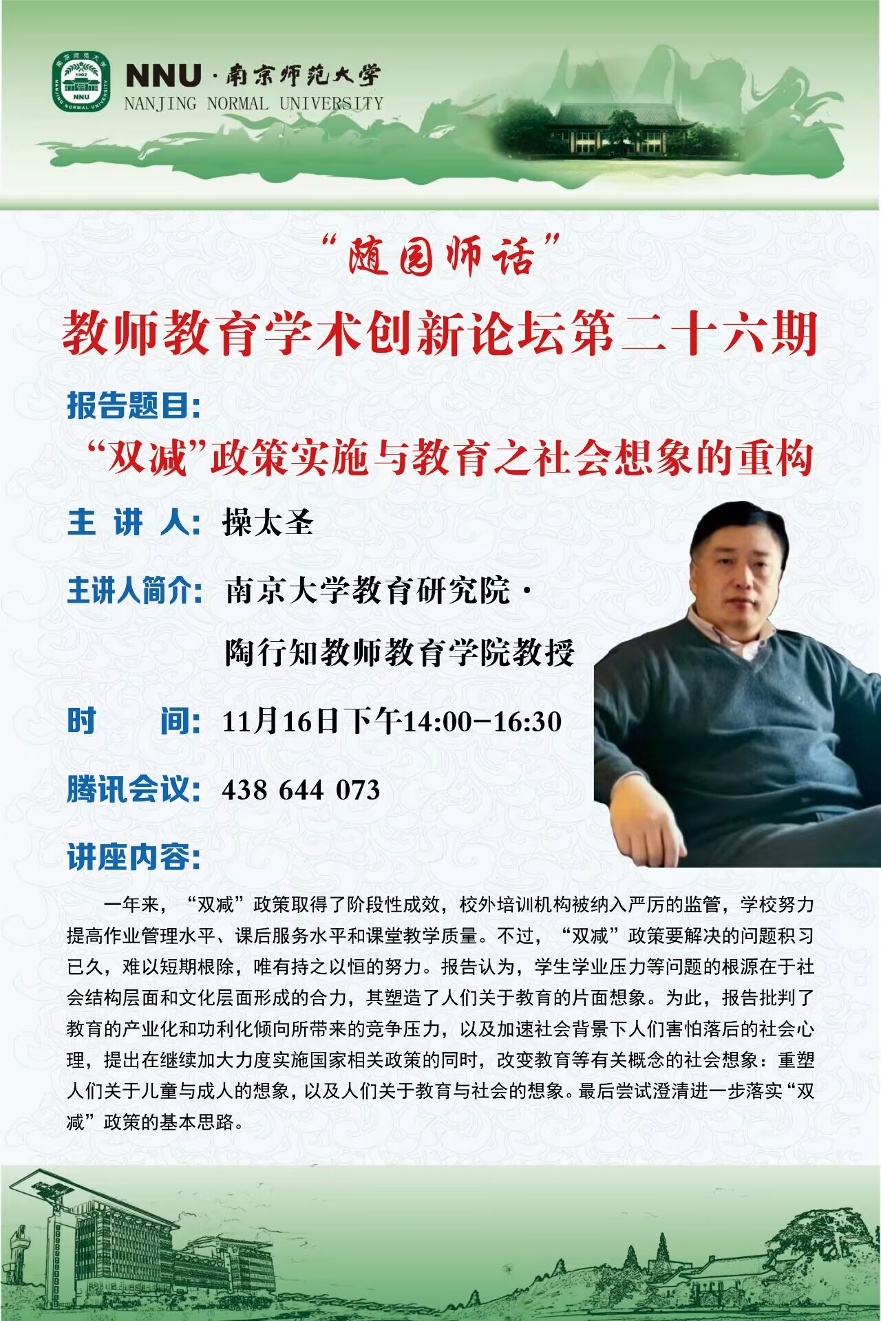 学术预告:“随园师话”教师教育学术创新系列论坛(第二十六期)