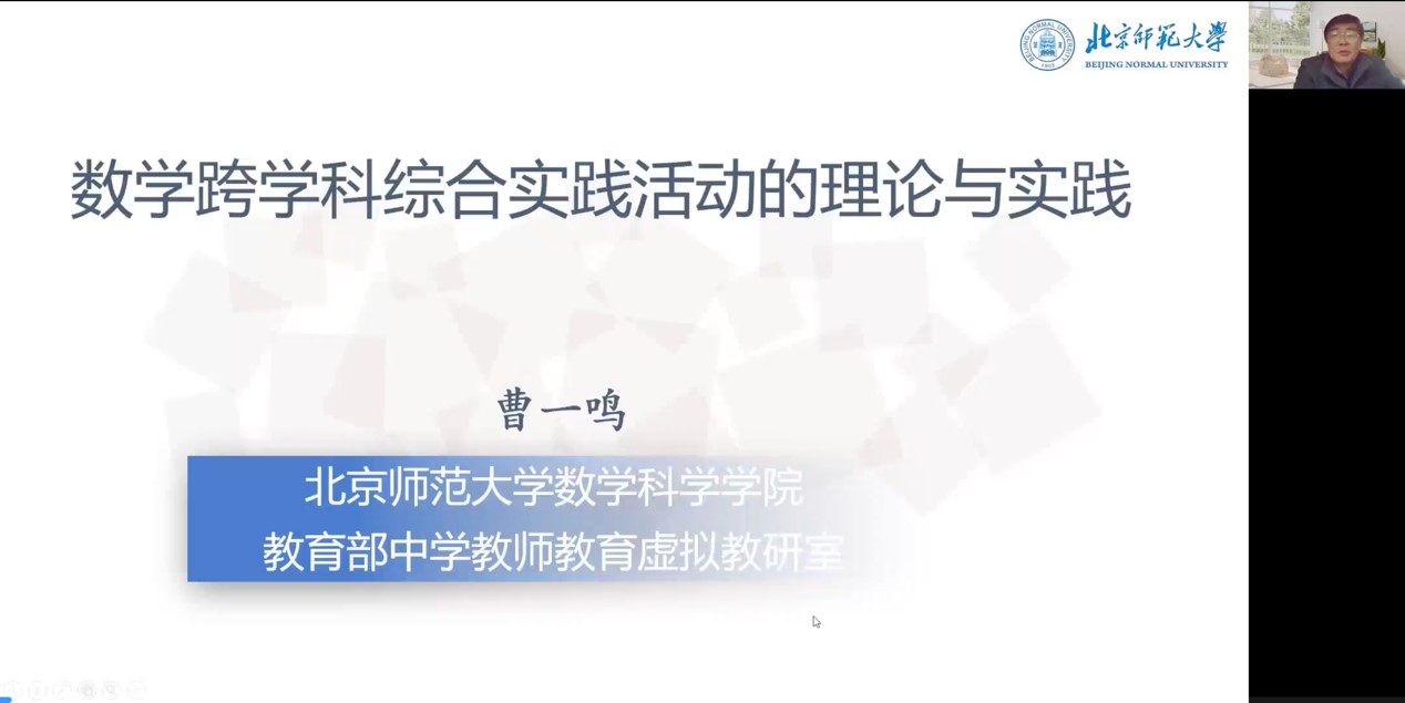 本次讲座中,曹老师主要从初中数学跨学科主题活动背景及其意义、跨学科主题活动中的核心素养目标、跨学科主题活动的特征以及跨学科主题活动设计四个方面进行讲授。