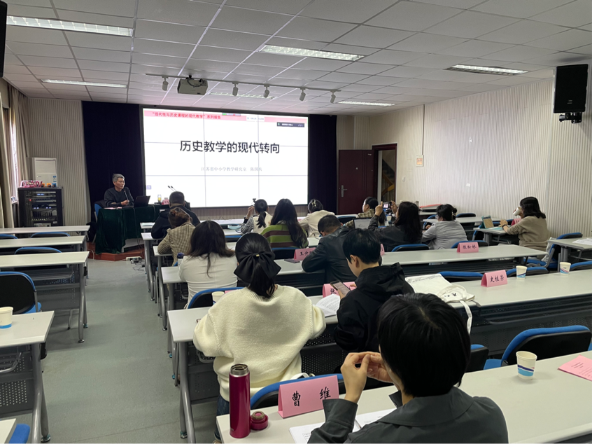 随园校区作了一场有关历史教学前沿问题的学术讲座,线上讲座也同时进行。陈国兵老师围绕“现代学习”概念在高中历史教学中的实际运用展开探讨,为一线历史教师和历史专业师范生提供新的思考角度和研究方向。