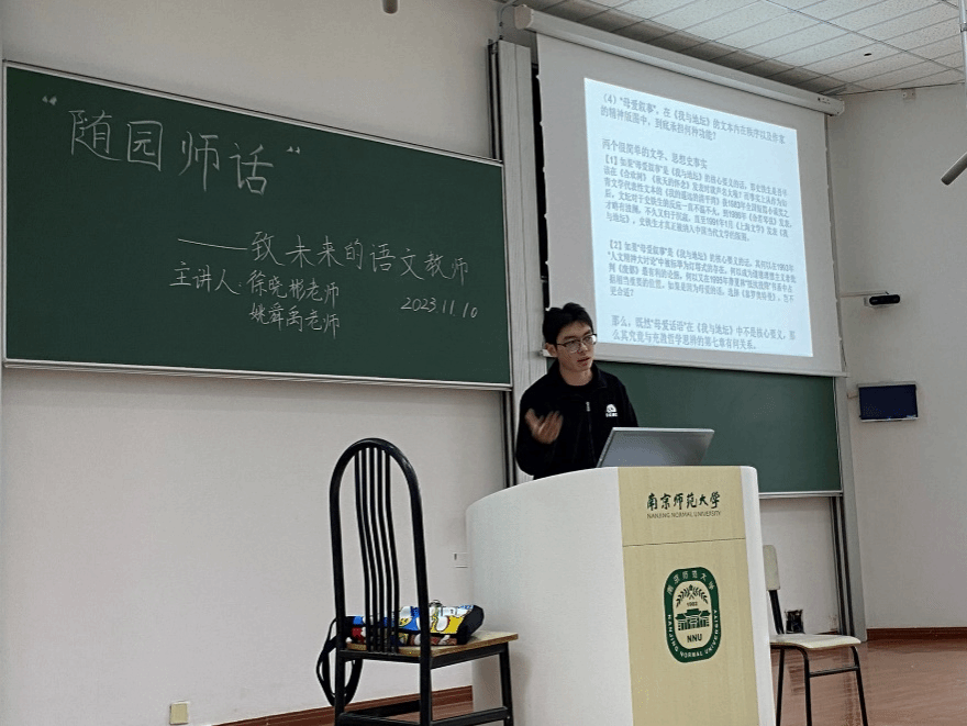 2023年11月10日下午, 南京市教研室语文教研员、市学科带头人、正高级教师徐晓彬老师和江苏省常州高级中学优秀青年教师姚舜禹老师为同学们带来了《致未来的语文教师》专题讲座。本次论坛活动由黄色视频