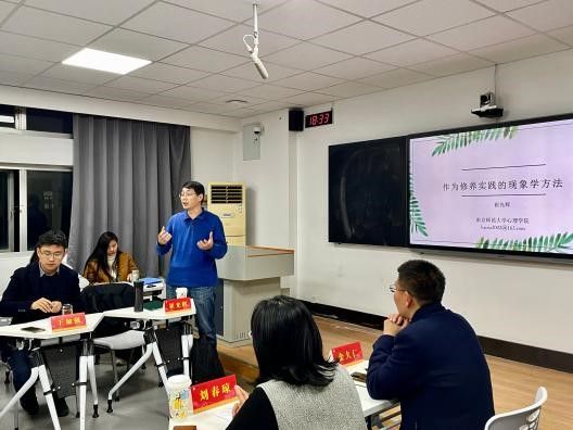 首先,崔老师点明本次讲座的核心要义:现象学研究有着修养实践的一面,研究者在不断的打磨中可能会得到修养方面的馈赠,获得精神的超越与安放。崔老师从自己的亲身经验出发,分享自己在现象学心理学历史、理论与实践间的循环往复和从现象学心理学到精神分析、进而延伸至修养实践体悟的心路历程,强调现象学研究要基于亲身经验,研究者要将自己投身于具体的经验之中,在这种投入现场的切身实践中,研究者可能会经历迂回曲折的心态变化,那些现场的声音可能会萦绕耳边、涌上心头,于是这样的研究成为在现场打磨中的滋养和转化。