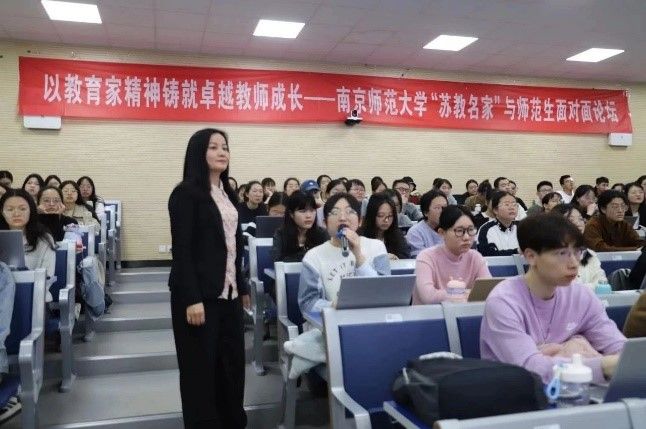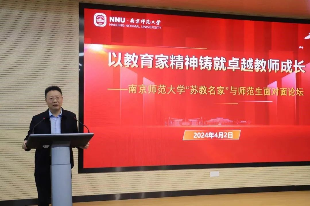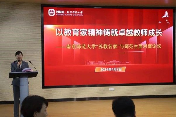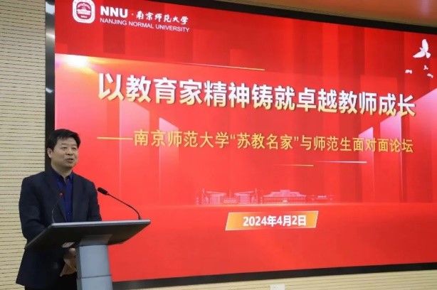 在120多年校史中的知名教育家,指出他们笔耕不辍、培育后学的“厚生”精神是南师人宝贵的精神财富,希望同学们进一步弘扬教育家精神,珍惜与“苏教名家”面对面交流的机会,卓厉奋发,砥砺前行,努力成长为新时代的“四有”好老师,为教育强国和中华民族伟大复兴贡献力量。