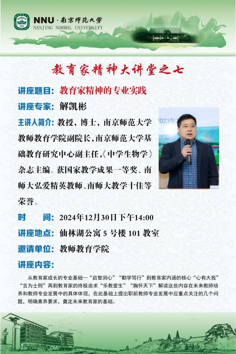 学术预告:教育家精神系列讲座(第七期)