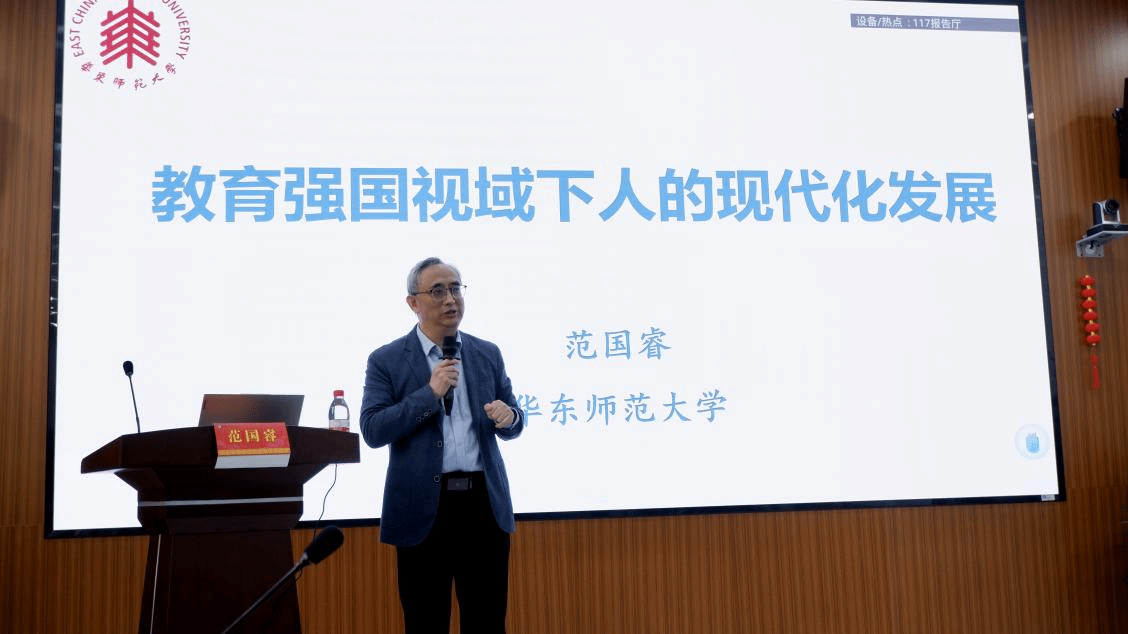 邀请教育部长江学者特聘教授、华东师范大学范国睿老师,以“教育强国视域下人的现代化发展”为题开展了相关讲座。